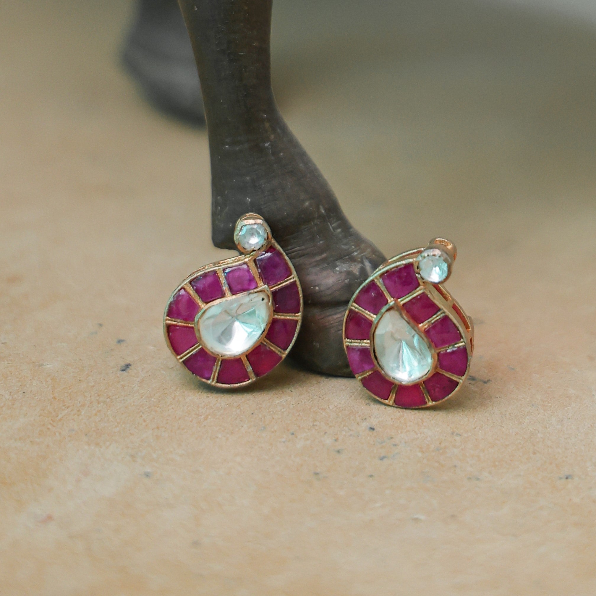 Our Faux Polki collection admires the heritage of Polki craftsmanship while embracing the versatility of contemporary style. Innovating heritage techniques we present to you faux Polki collection. Our designs are inspired by age old Polki regal jewellery and the setting we use beneath is the Kundan technique - setting the uncut faux Polki with silver foiling to give it a shine near to real polkis and lustre of regal, royal jewels as affordable luxury!