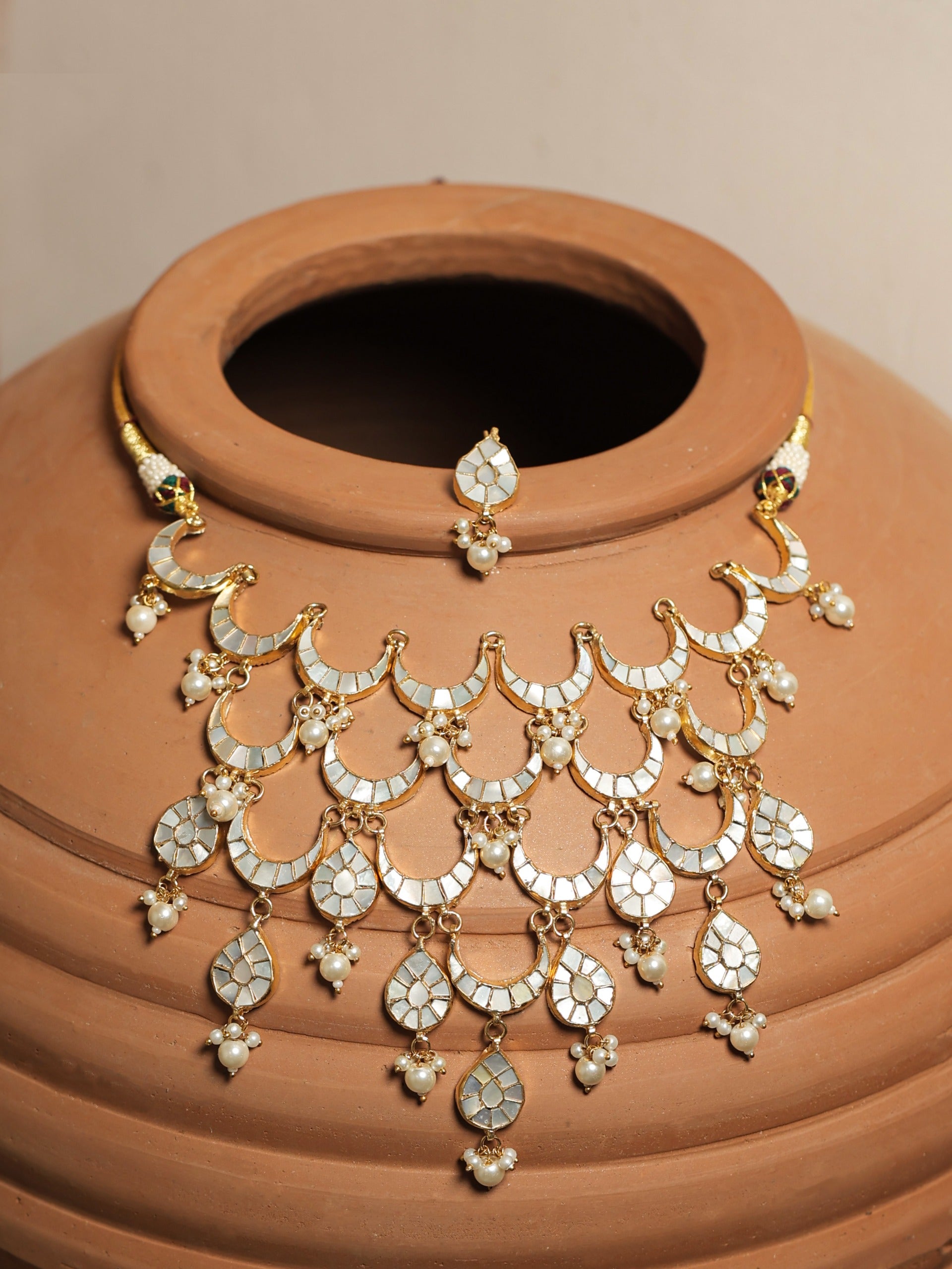 Muraad is synonymous to Mother of Pearl as our love and celebration of jewels began with this beautiful technique of crafting jewellery from gem stones. With Mother of Pearl as our forte, we have created thousands of designs with gemstones set in silver foil for the bright shine and fire , brass to hold them together and gold plated all over to make heirloom inspired Indian jewels available and accessible as affordable luxury.