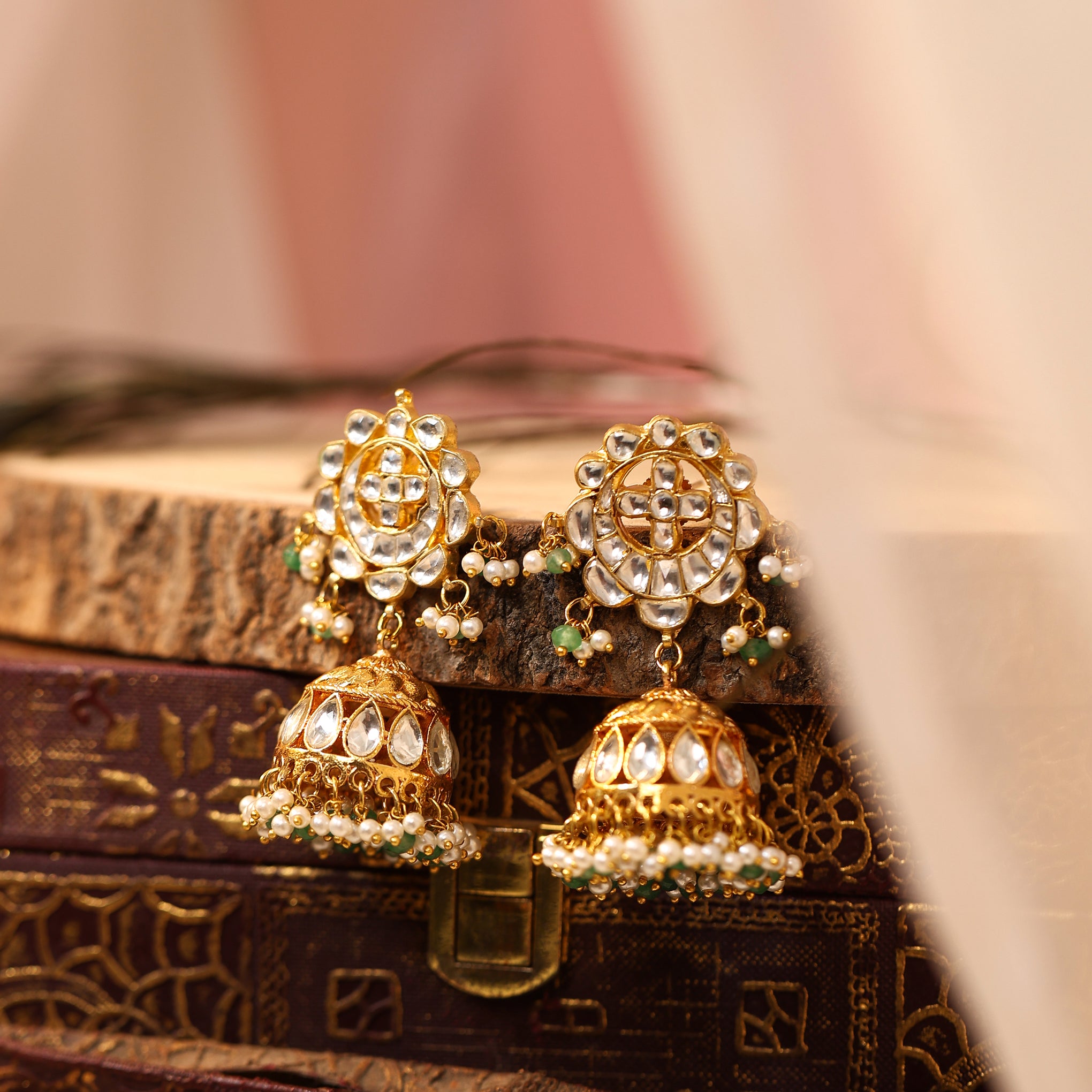 MDE778- White Colour Gold Plated Jadau Kundan Jhumki