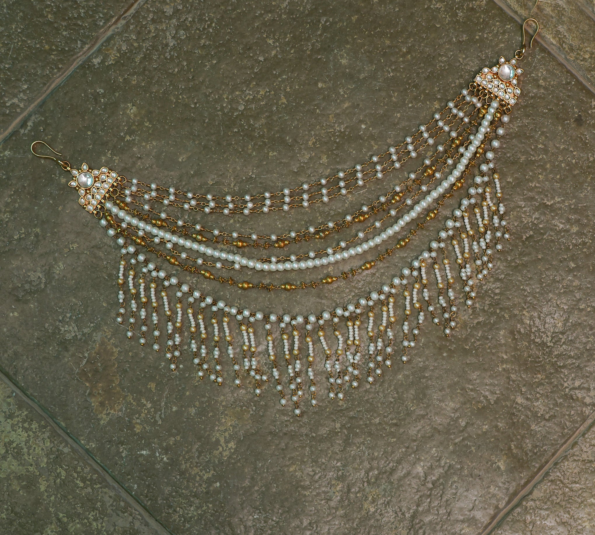 MDE302- White Colour Gold Plated Jadau Kundan Kanchain