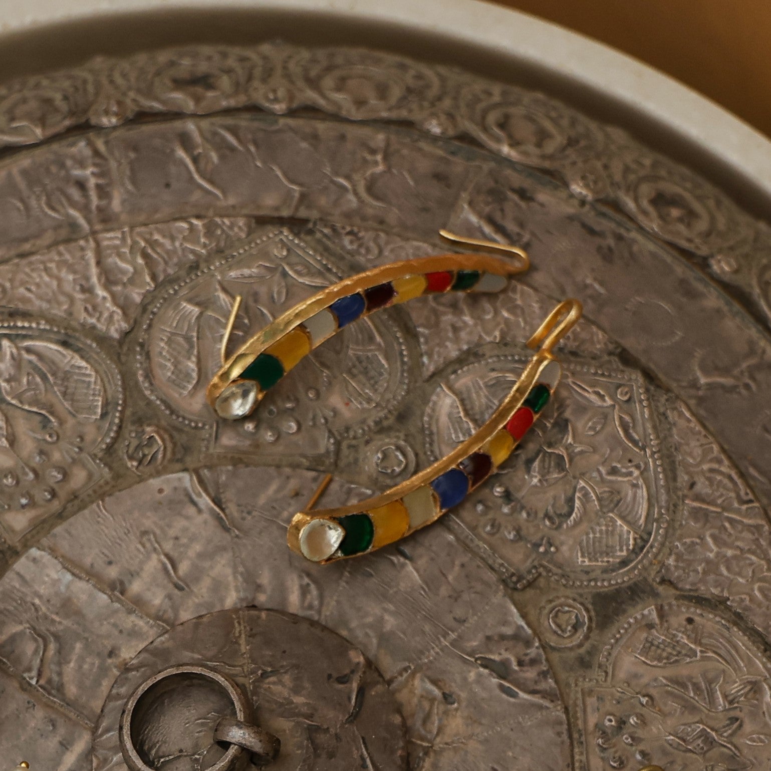 MDE677- Multicolor Gold Plated Jadau Kundan Earcuffs